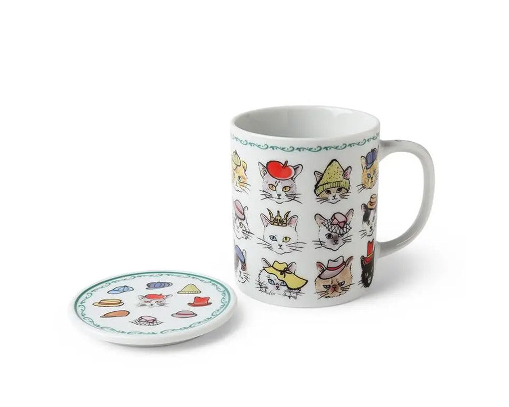 This swanky mug features a group of swanky cats in a variety of different hats. This lidded mug is microwave and dishwasher safe!